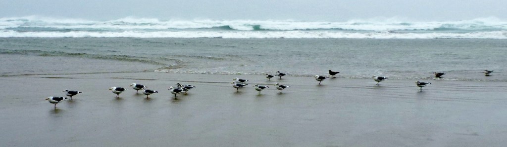 These shorebirds are feeding “in the mirror.” The mirror is the reflective sheen left on beach sand by receding waves. In the photo above, you can see a nice reflection of each bird; thats the mirror in action. Ornithologists, beachcombers and photographers use this term all the time.