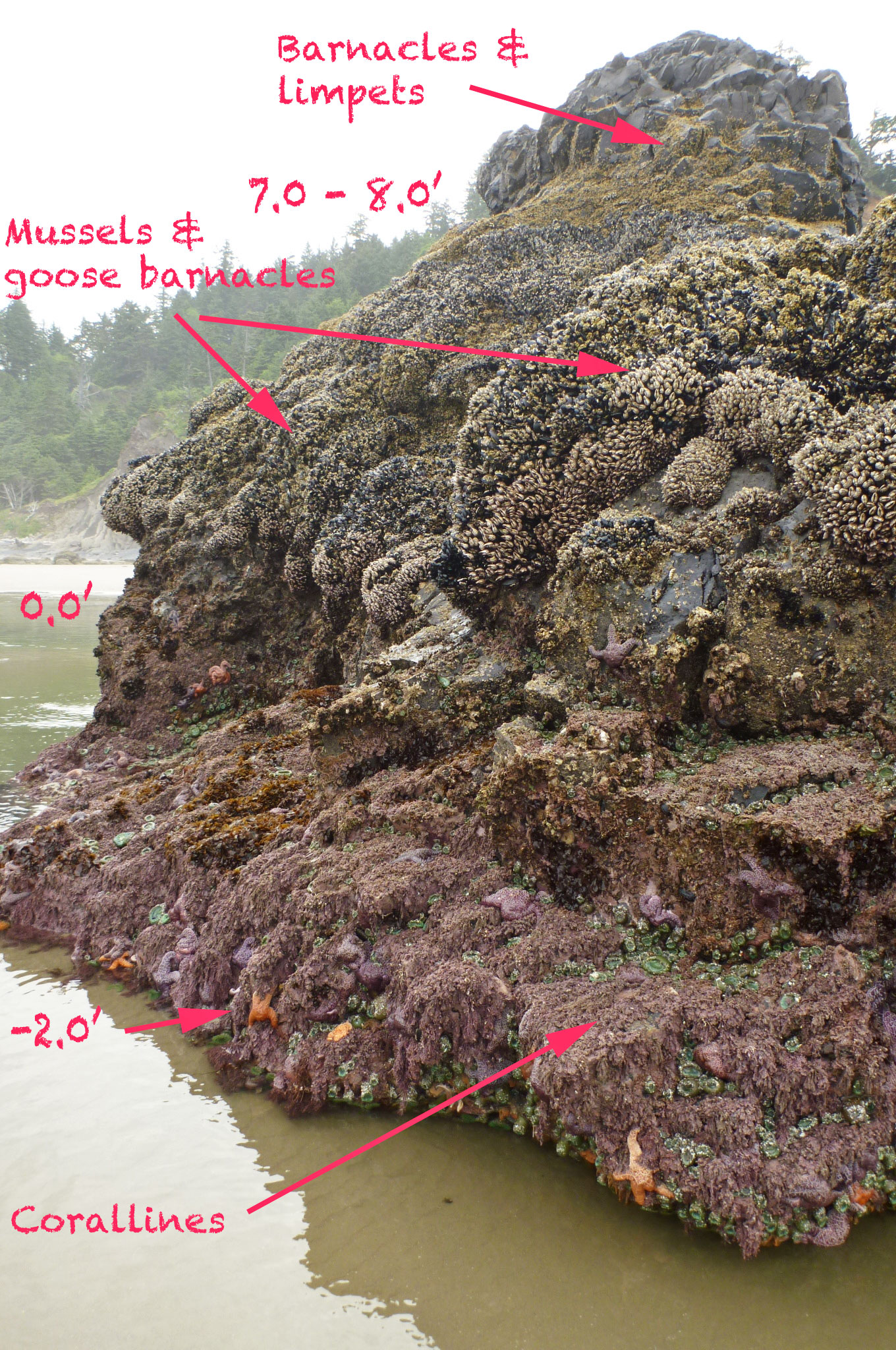 I should also mention that I am not an expert on the intertidal or its communities. The nomenclature I have adopted for the zones and it’s inhabitants may not be that most in use by intertidal researchers; and my identification of some of the species featured in this post could be erroneous. I’ve used my own judgment, consulting the references cited below, but if you detect some identification mistakes or can suggest a better way of describing the zones, I hope you’ll let me know.