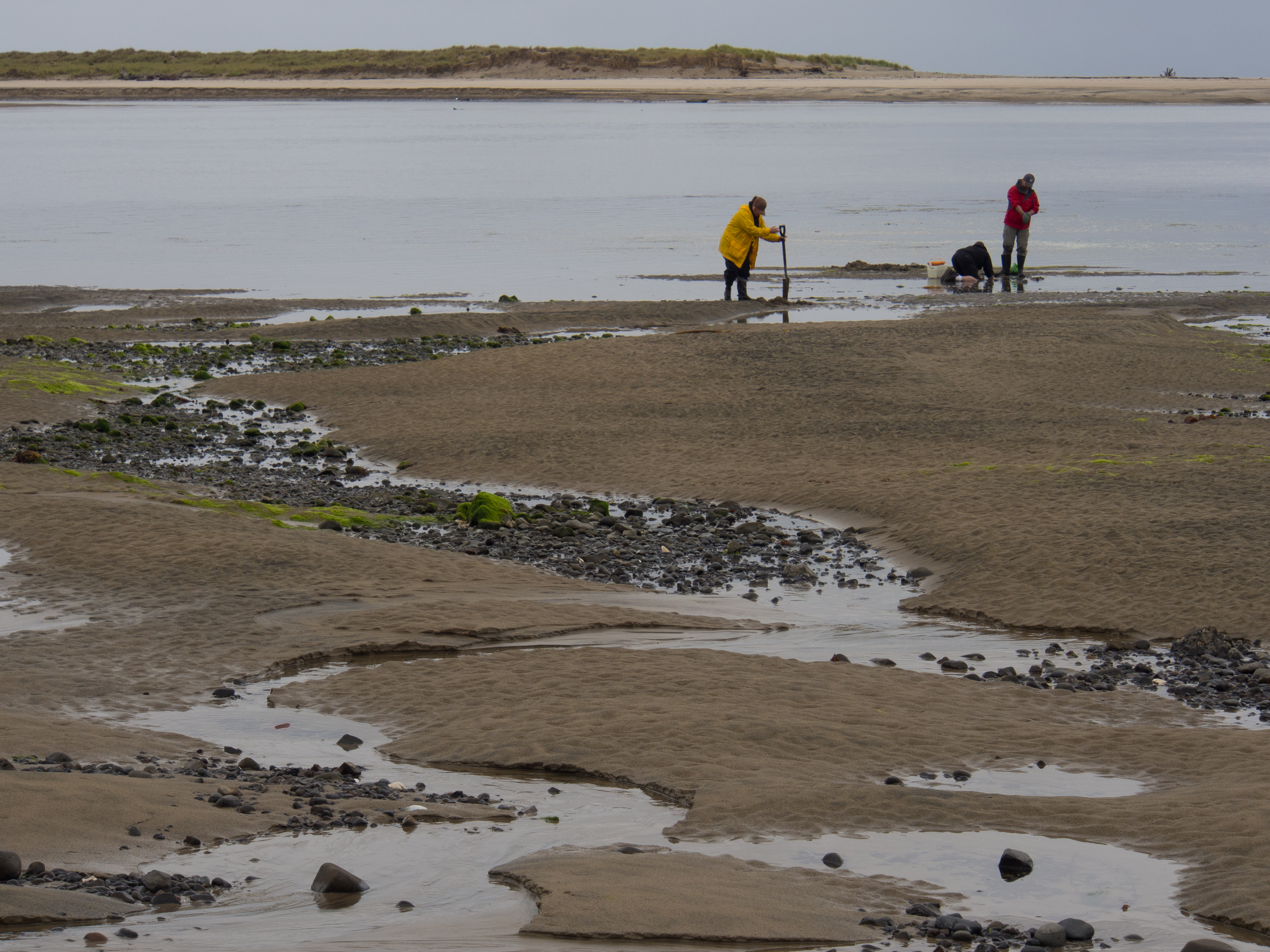 Dolan Halbrook’s photos illustrating gaper clam digging in the estuary, and recently harvested live clams improved the breadth of this post. I thank him for sharing “clamdiggers” and “ready for the pot”.
