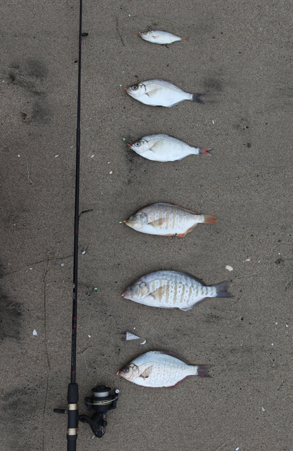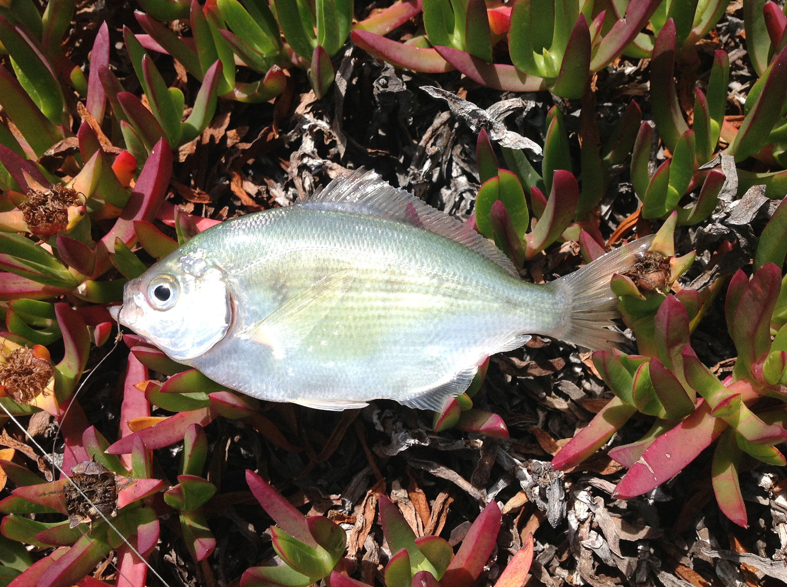 10:30. I catch a shiner surfperch — an embiotocid like the walleye, and like the walleye, fairly pelagic. But this fish is in the wrong subfamily!