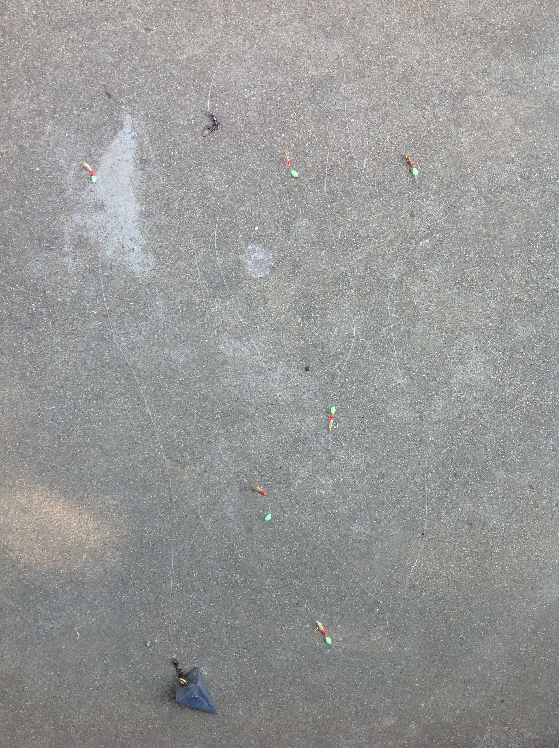 While developing the slideshow that would accompany my talk at the Joint Meetings of Ichthyologists and Herpetologists in Reno, the idea came to me to compose a slide showing actual surfperch specimens arranged in phylogenetic ( ‘family tree’) order on a Sabiki rig, which is a multiple-hook line commonly used to catch small fish for bait. It would be a novel and humorous way to present a phylogeny to a group of scientists and would simultaneously make the points that 1. I was collecting these fish via hook-and-line, 2. that all six species in the subfamily are closely sympatric (= they live in the same place). One good slide can really stick with a viewer and data presented visually can often be more compelling than a table of numbers. I am therefore a true believer in making every slide in a presentation count, and I’m willing to expend substantial effort to get the perfect picture.
