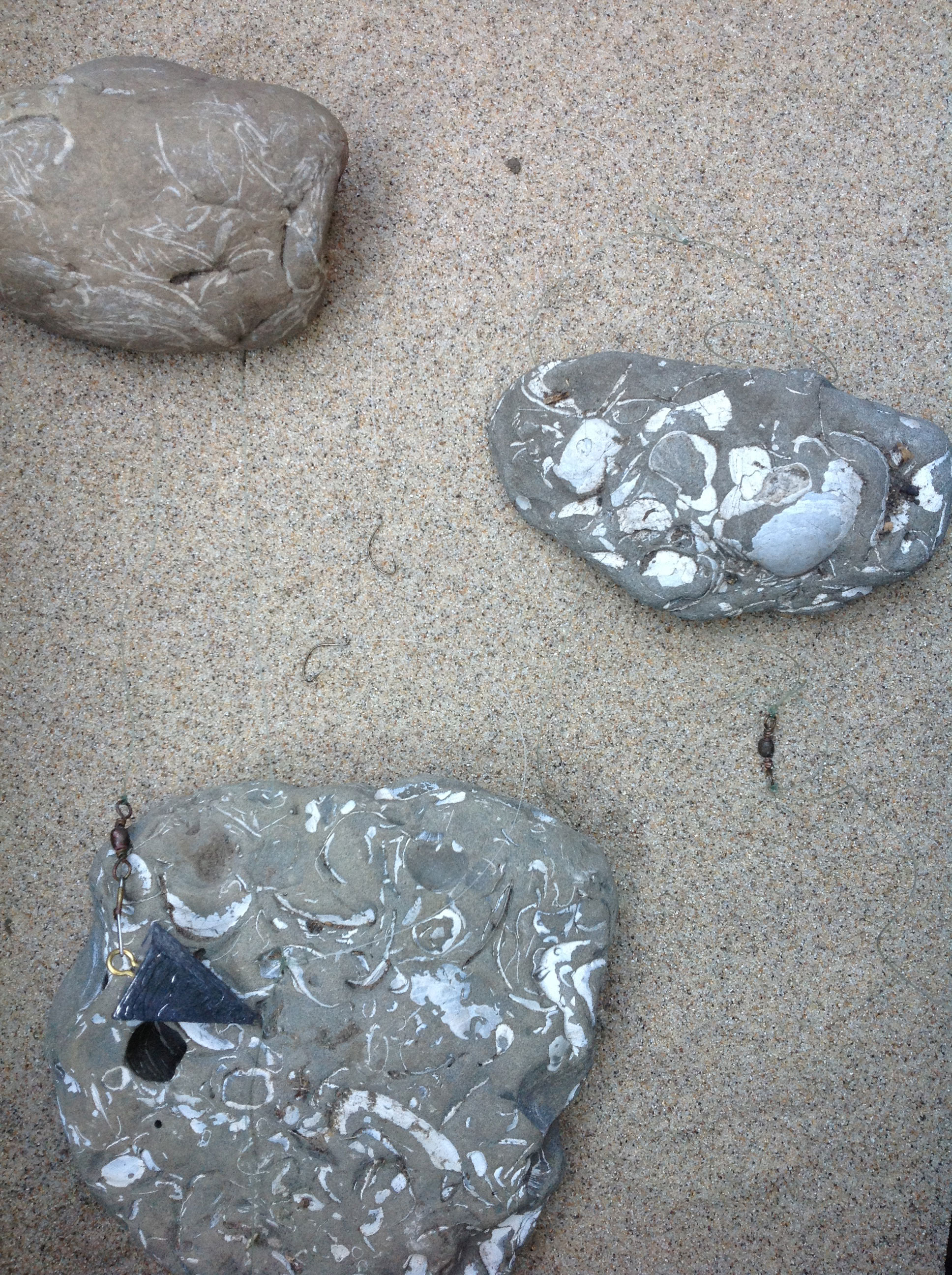 The sun was going down, some good cloudscape was forming — if I got the fish, it would be good conditions for a shoot. The tide was a 5.6 footer, pretty high for that beach, and giant waves were rolling in, cresting over a low cliff of sand that ran the length of beach, and forming large flat tidepools on the upper reaches. Every time a wave passed by, the pilings would shake like Lincoln logs. It was like being on a wooden ship on the open sea. It was challenging to cast down into that roil. I hadn’t had time to obtain sandcrabs, and only had store-bought shrimp to fish with, but I started in.