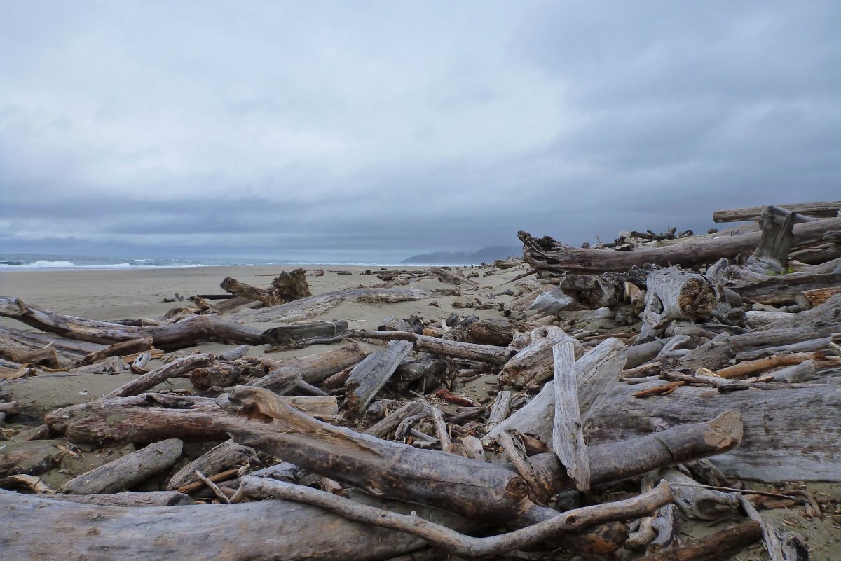 A pioneering dunegrass, Elymus, forges down off the safety of the foredune onto the backshoreA wrack line forms when king tides and storm surge push all the big wood up onto a shelf on the backshore