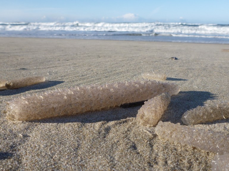 Pyrosomes are so uncommon in the northern Oregon drift line I can’t recall seeing them previously. If you are interested in these little-known pelagic tunicates, you can read about my first encounter with pyrosomes and see some more photos in A Pyrosome Beach Cast.