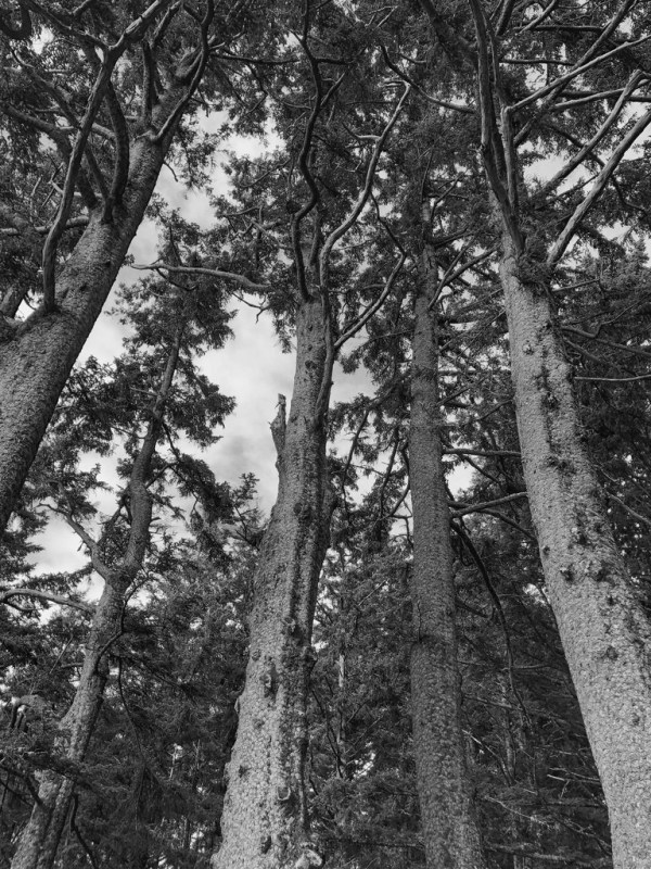 Sitka spruce cloak the Pacific Northwest’s maritime headlands. Here, where the sounds of the surf are never silent, Sitka can be dominant. Arguably Oregon’s most iconic Sitka is the Octopus Tree. Rather than a central trunk, it’s limbs are arranged radially. At 105 feet tall, with a a vase-like shape, and a circumference of 47 feet, it’s a remarkable tree and a photographic challenge.