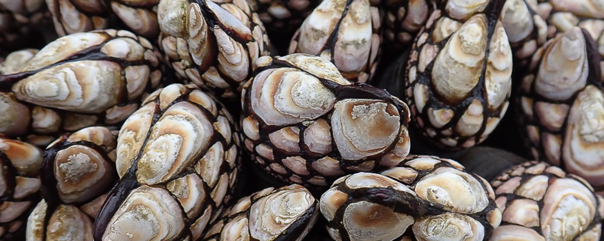 Gooseneck barnacles, Pollicipes polymerus, stick to surf-swept shores. They stand out in the the mussels beds.