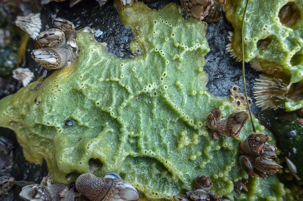 This beautiful intertidal sponge is shown as Haliclona permollis in some of the references and online guides shown at the bottom of this page. If I understand the current interpretation, Haliclona permollis is a synonym of Haliclona cinerea. Keeping up with taxonomic revisions is part of the fun.