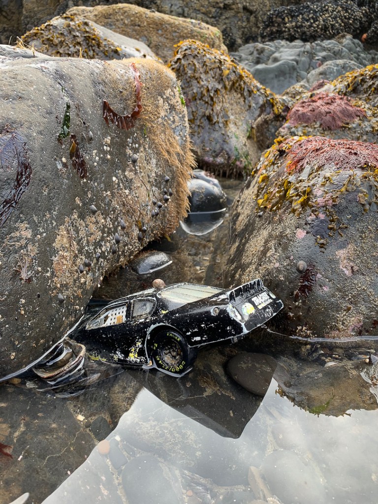 Root wad wedged in high intertidal rocks XL flipflopA curious wrack line findEvery lost float has a storyRemnantsLost bait box