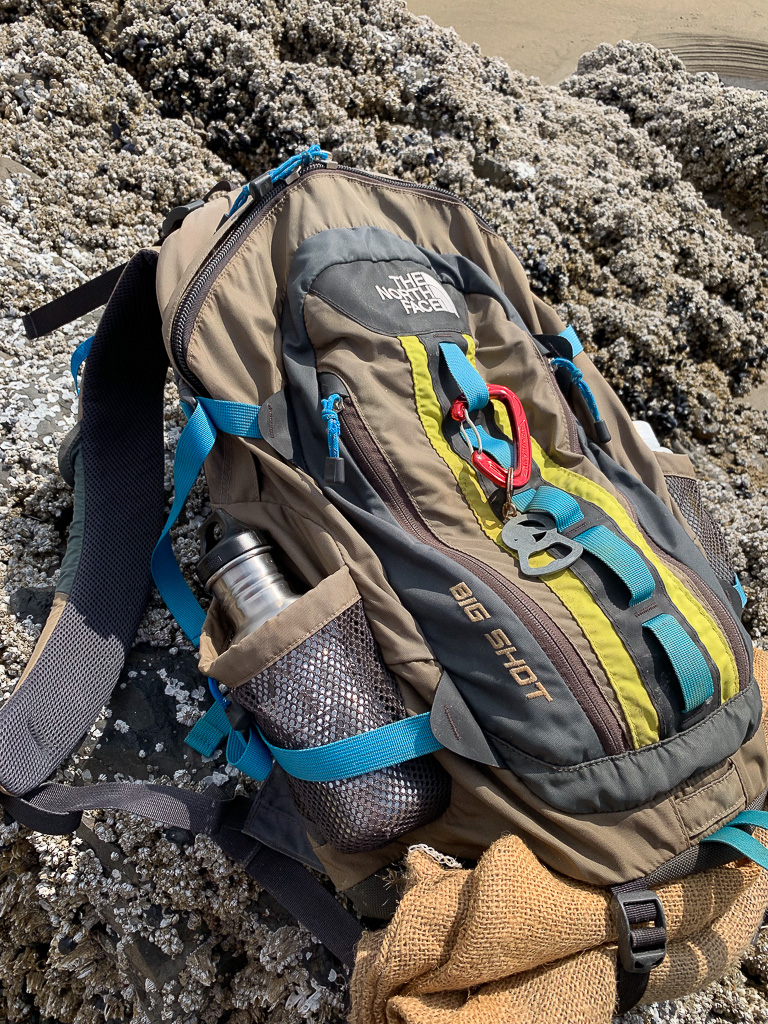 End of the TrailI have a sentimental attachment to my pack Purple shore crab, Hemigrapsus nudus, pinching clawUnderside of a female Dungeness crabSneaking a quick shoreward glance