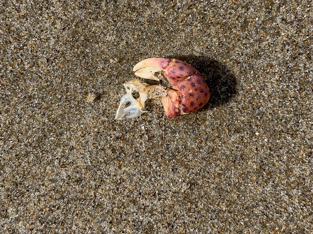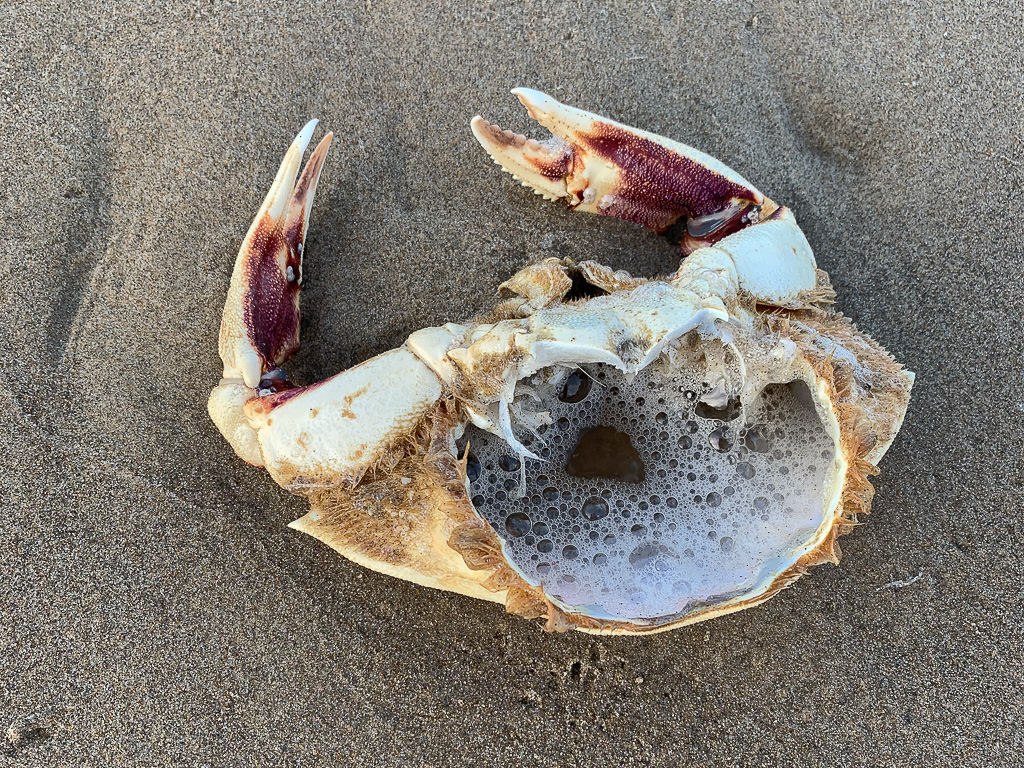 PromisingBeach hopper workings on drifted seaweedBeach hoppers, Megalorchestia californianaMolt- Pacific rock crab, Romaleon antennariumTrucking across the bottom of a shallow, sand-filled poolAvian scavengers won’t turn down kelp crabDrifted shell- Pacific littleneck, Leukoma staminea