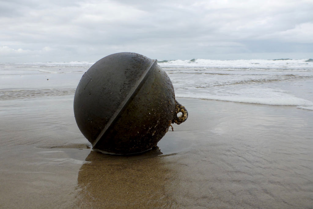 Big styrofoam float’s been at sea a while A new arrivalFloat shapes indicate functionHitchhikersQuiz: local or international?Small 2-lugged trawl floatSmall lugged float with kanjiUp in the wrack line, a perch for my gearA long way from homeNo nectar, no messageCommon 2-lugged floatAn uncommon float color on my home beachesLugs on opposite endsFishes well down to 80 meters?