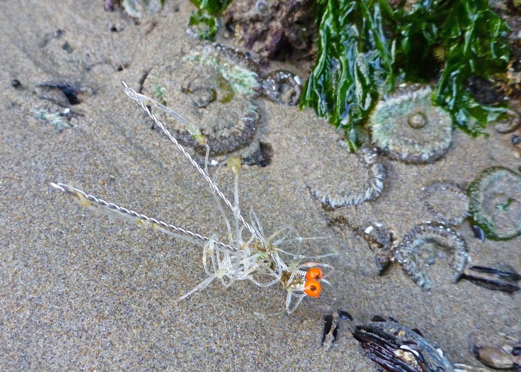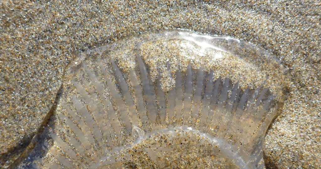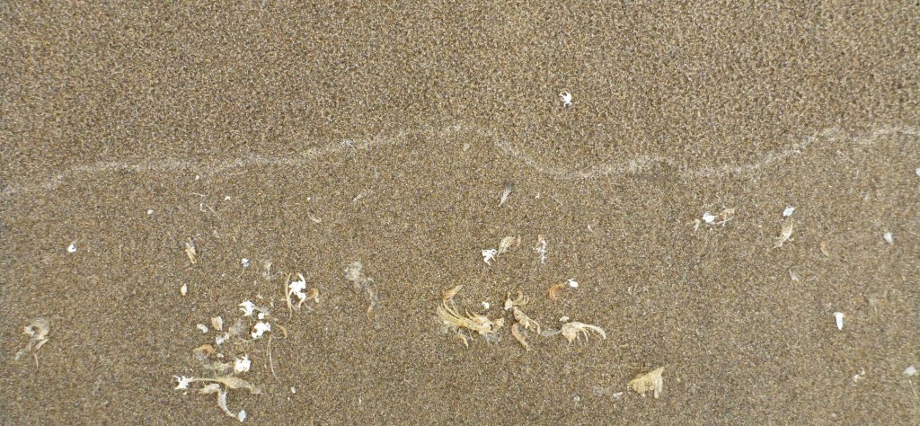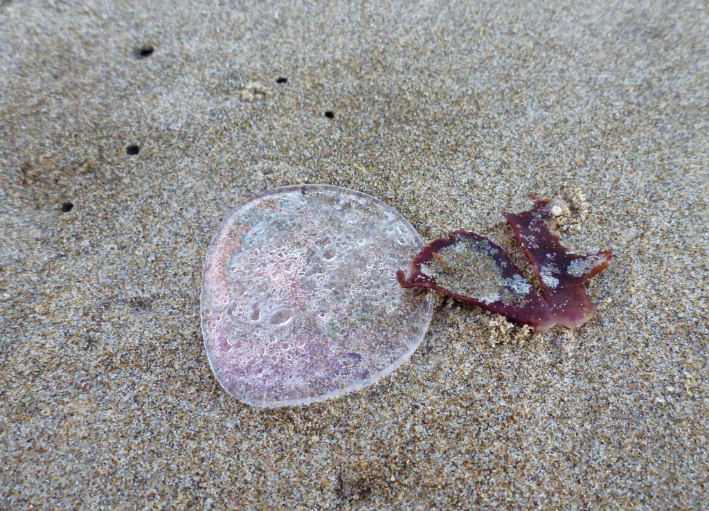 Lot’s of baby Pacific mole crabs Emerita analoga in the drift lineFucus and eel grass ZosteraMoon Jelly AureliaAngling in vainThose gulls will pick at anythingI just don’t know…A jelly lens captures the sun and magnifies the sand grains beneathEccentric sand dollar test Dendraster excentricusSea gooseberry Pleurobrachia, a ctenophoreCallianax raceway Jelly fragmentTracksDrift Fucus and hitchhiking pelagic barnaclesA freshwater plant, huh?Pinching claw – Dungeness crab Metacarcinus magister