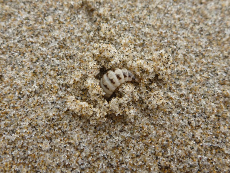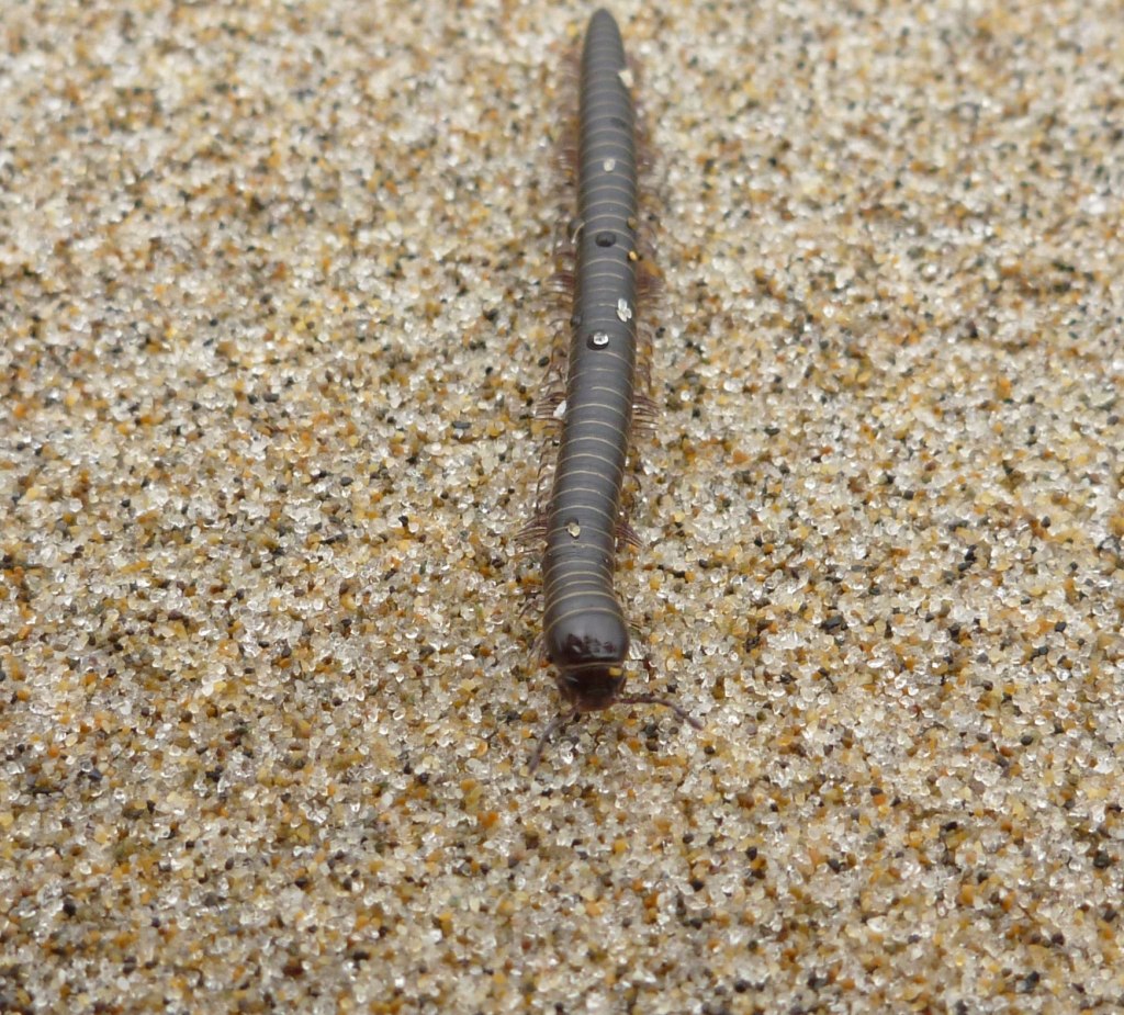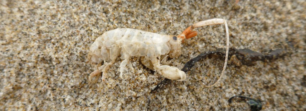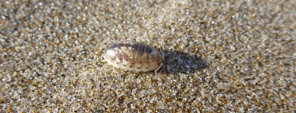 There’s a beach hopper party under and along this bull kelp stipeAn intertidal millipede?Dropped off my gear while I got to know Alloniscus on the backshoreBeach hoppers make a living on beach beach cast algae. Their shows, little holes, outline the edges of this feather boa kelpLots of molted Emerita tests in the drift Foredune stabilized by an Ammophila monoculture***