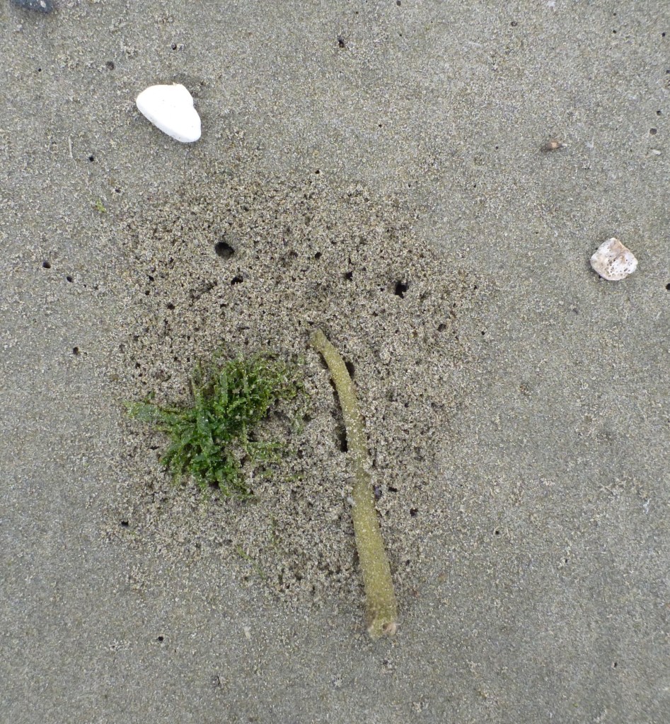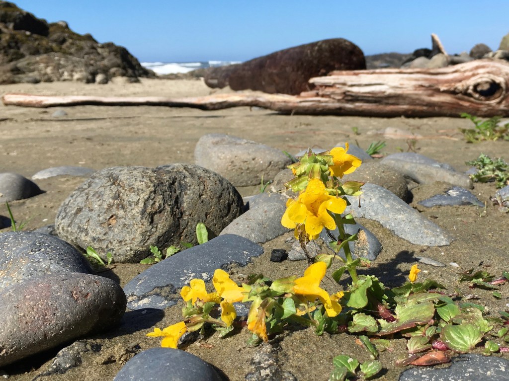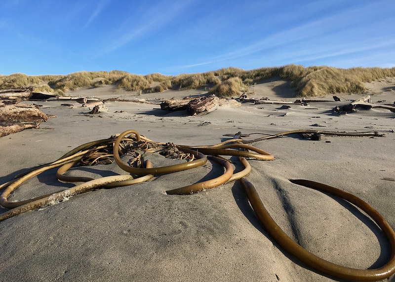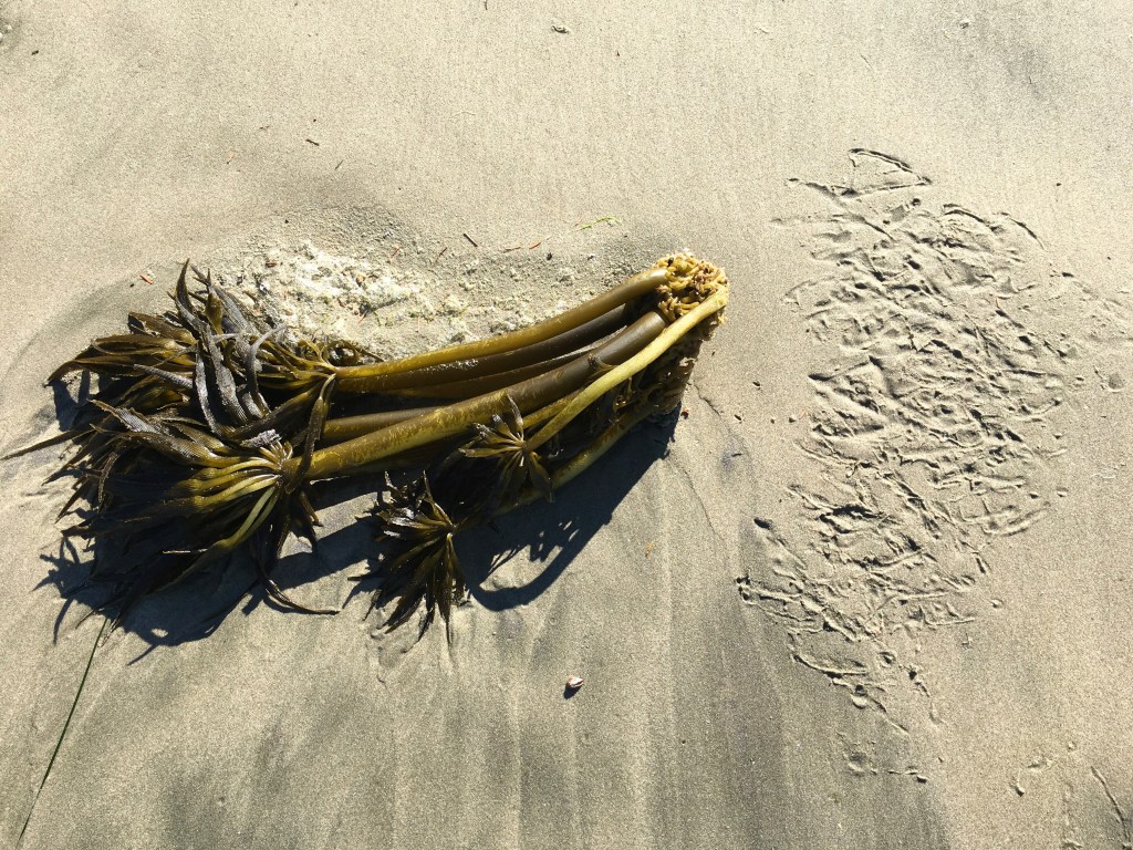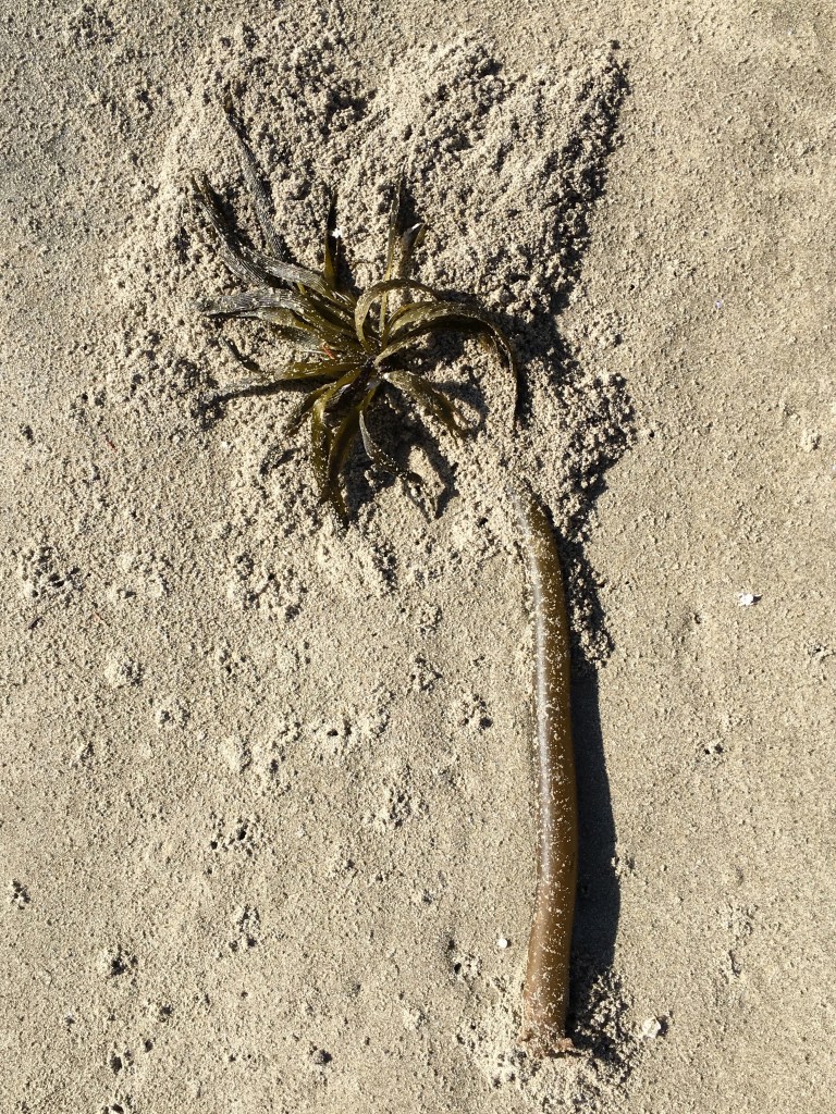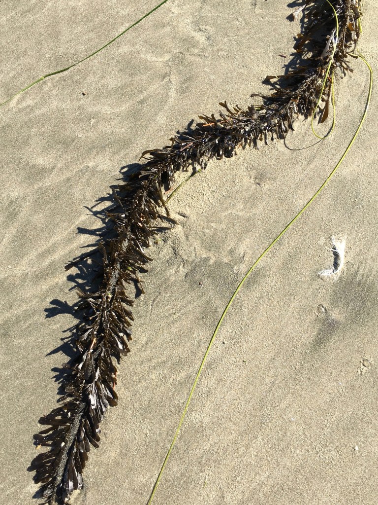 Drift PostelsiaA gull’s interest in drift Postelsia is solely on the holdfast | SeptemberDrift feather boaThis drift bull kelp almost forms a treble clefGulls loafing at the creek mouthA little blowholeSea foam, spume, is the product of phytoplankton breakdownRumexA pioneering dandelionA pioneering MimulusMoss carpet on the supralittoral fringeBeach hopper workingsFat gaperMole crab Emerita analoga workings in the swash zone***
