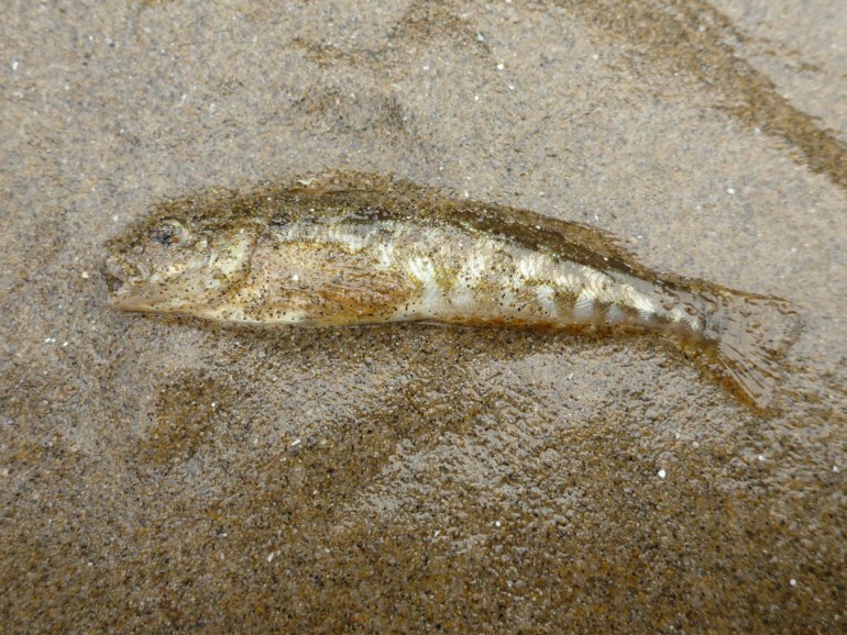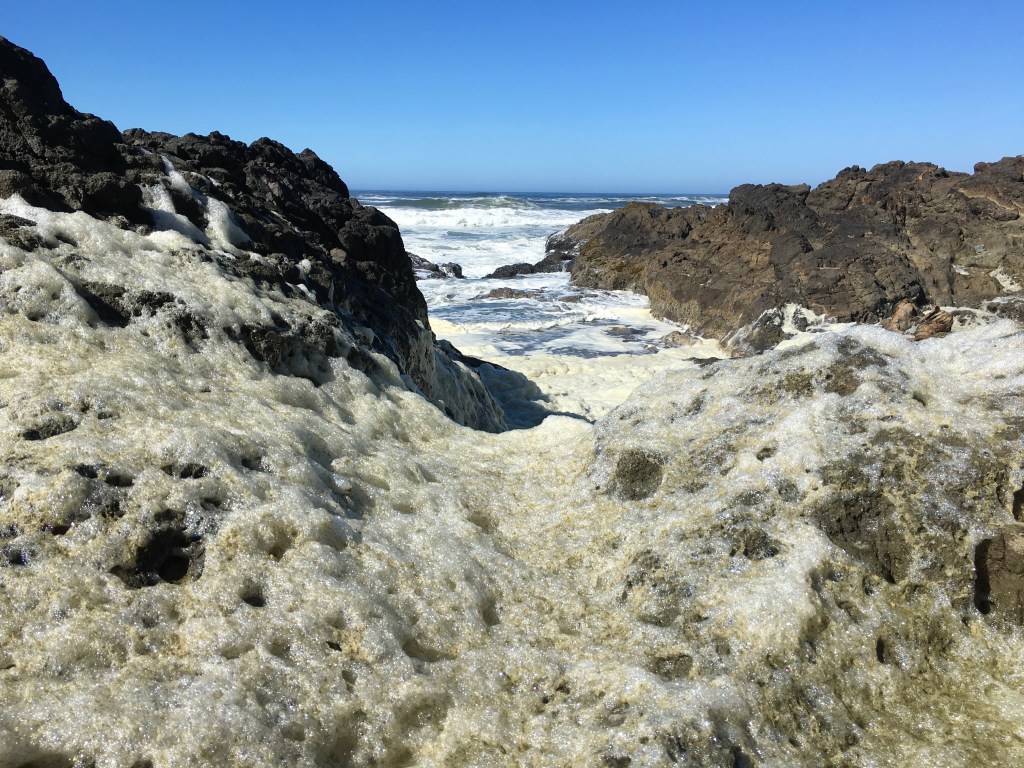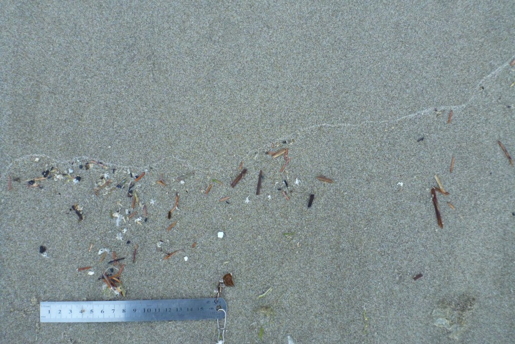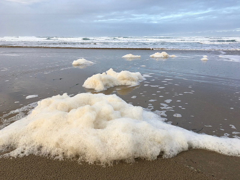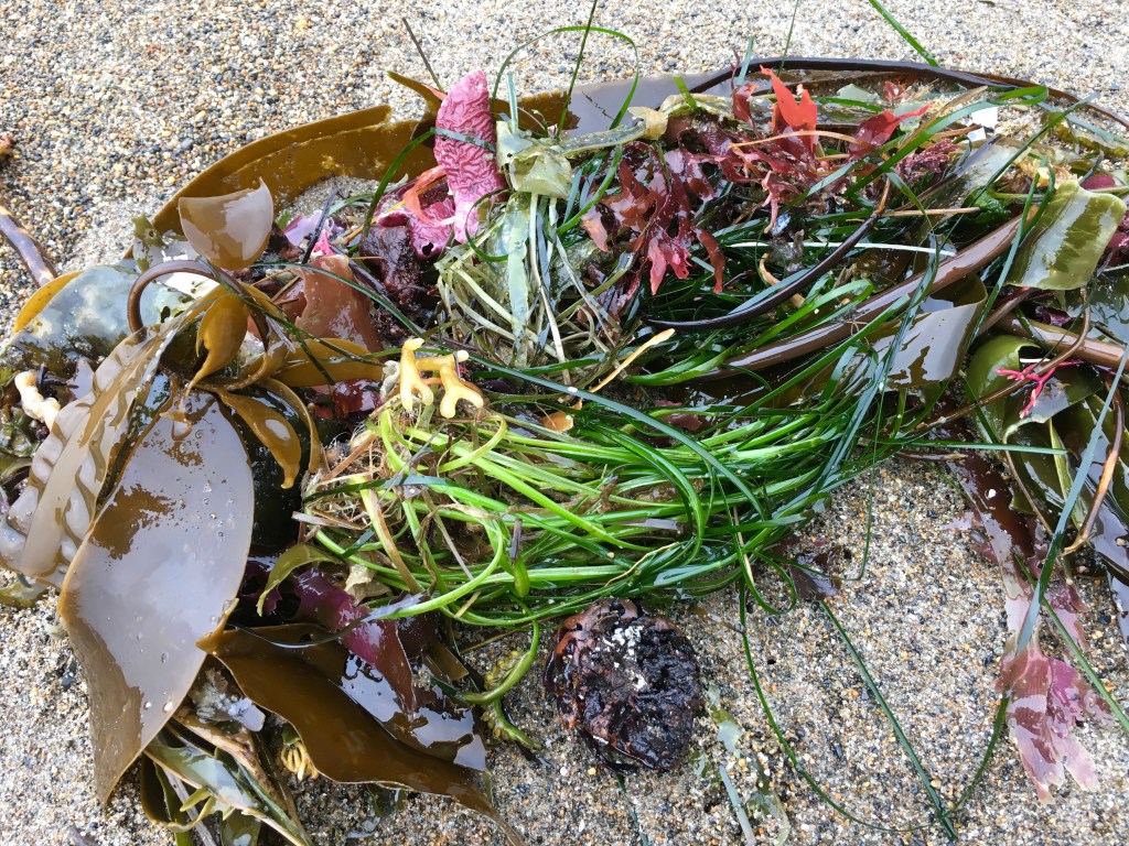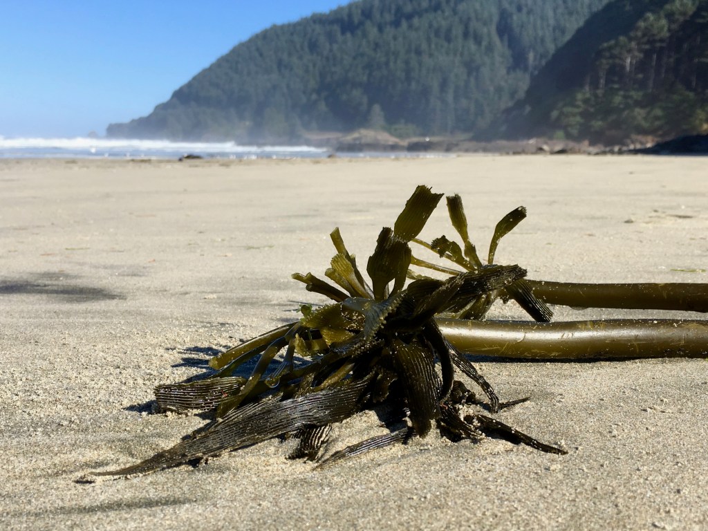Drift PostelsiaA gull’s interest in drift Postelsia is solely on the holdfast | SeptemberDrift feather boaThis drift bull kelp almost forms a treble clefGulls loafing at the creek mouthA little blowholeSea foam, spume, is the product of phytoplankton breakdownRumexA pioneering dandelionA pioneering MimulusMoss carpet on the supralittoral fringeBeach hopper workingsFat gaperMole crab Emerita analoga workings in the swash zone***