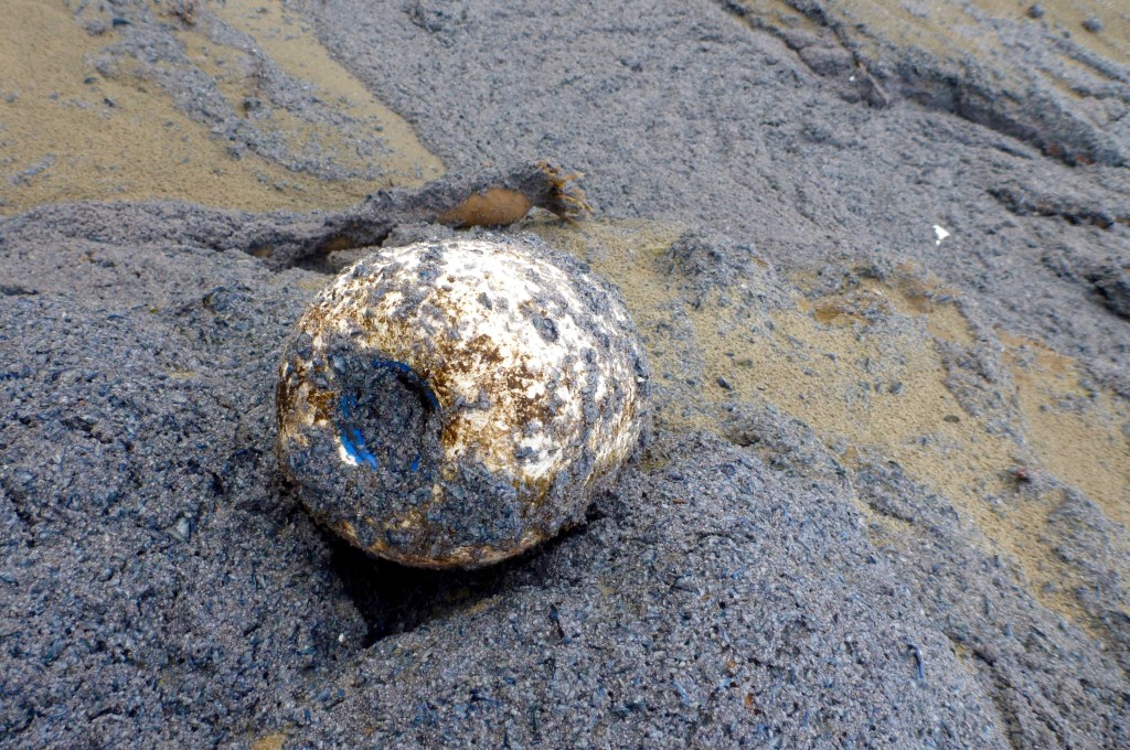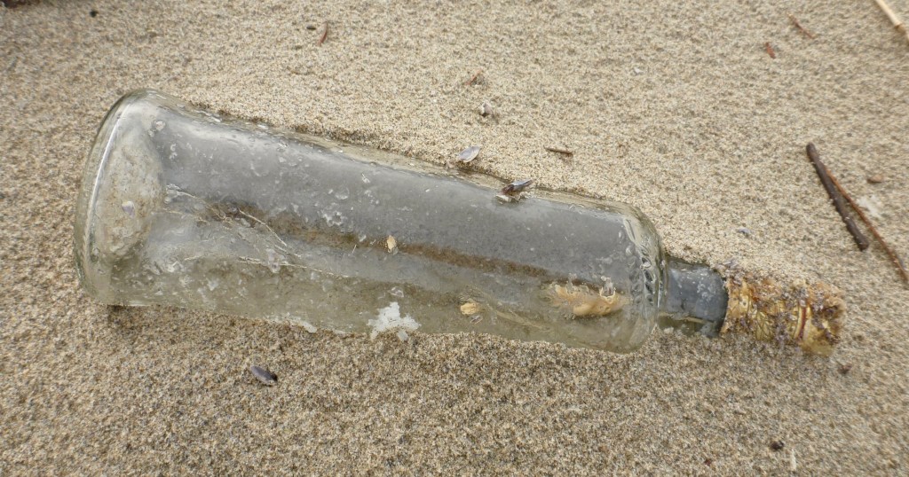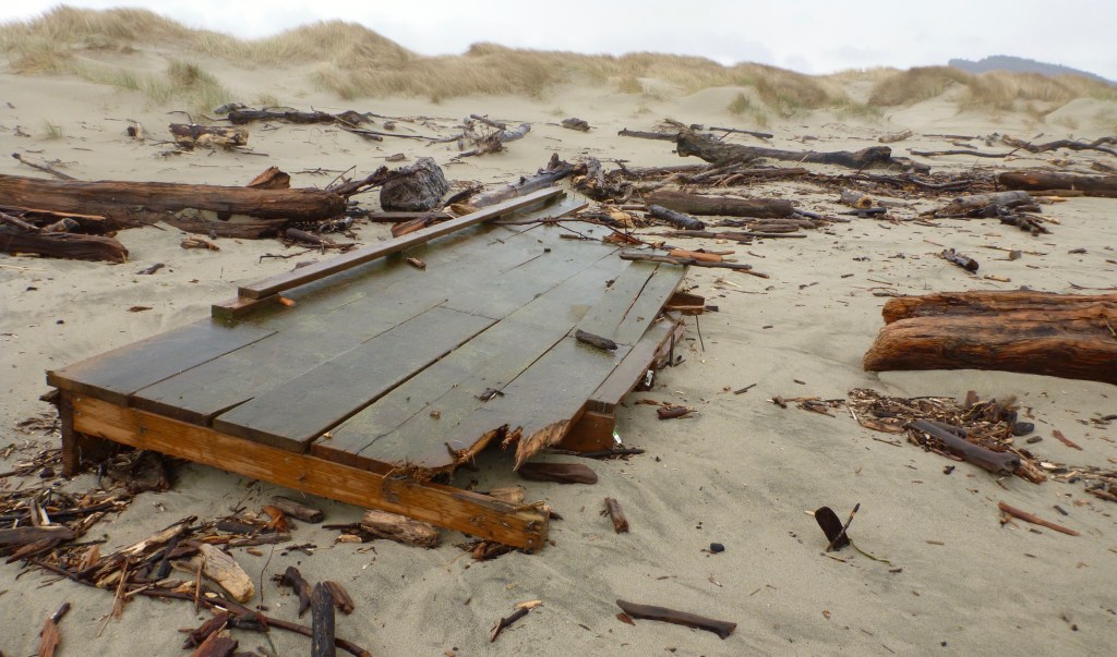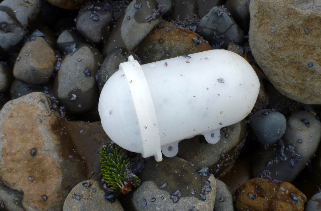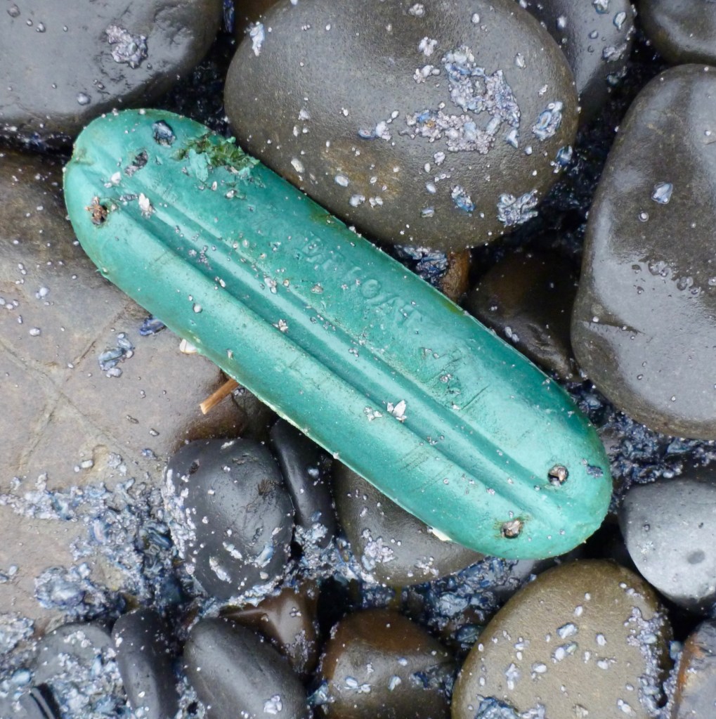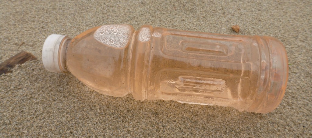 The wad – part of a shotgun shell and one of the most common items in the drift lineI’m curious, but probably not a good idea to taste thisHagfish trap funnelThe case – part of a shotgun shellLot’s of big wood on the shelfNew lumber, treated too!A crate for your wrack line treasuresCan you identify the language on this jar lid?Drip filterToo heavy to carry homeLighterLost dock – freshly treated lumberStyrofoam remainsHeinz Ketchup Smelly Jelly , an attractant Track in the wrackWorld traveling poly Jerry canWorld traveling liquor bottle with no message, just a head of wheat insideWhole tree covered in barnaclesLil’ Corky in Fire Tiger finish – part of the terminal tackle for steelheadTangle of line in a tangle of rootsSea foam – a product of phytoplankton breakdown***