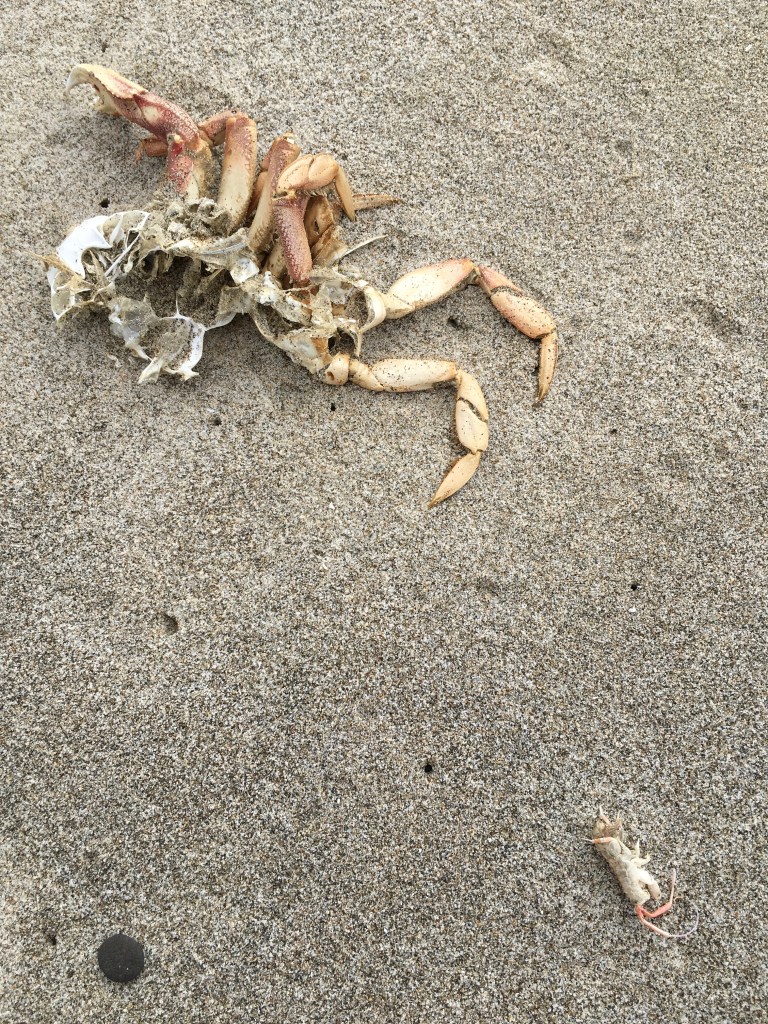 Drift linePeople love a fort A pioneering dunegrass ElymusBurrow, Megalorchestia californianaVast Emerita analoga workingsDrift corallineTrail, Callianax biplicataThe Dungeness molt is onDungeness carapace, nice barnacle tooLots of big woodPictured rove Thinipinus pictusCrab buoyDrifted ashore on a lost buoy line and the gulls couldn’t be happierBig or small, crustaceans moltAbundant juvenile Emerita exoskeletons in the driftCalifornia beach hopper Megalorchestia californiana***