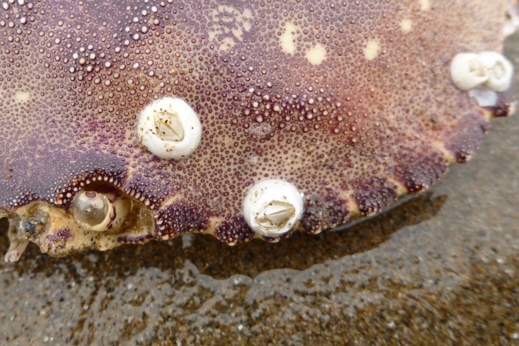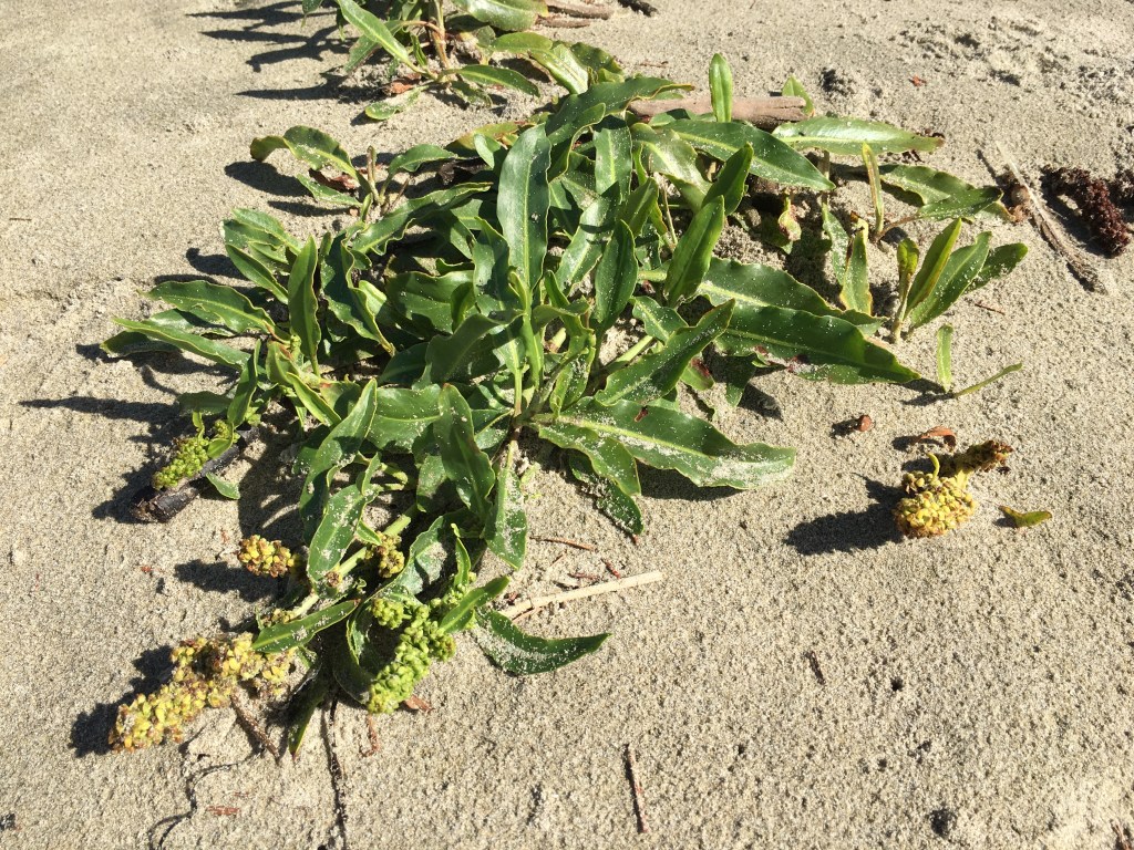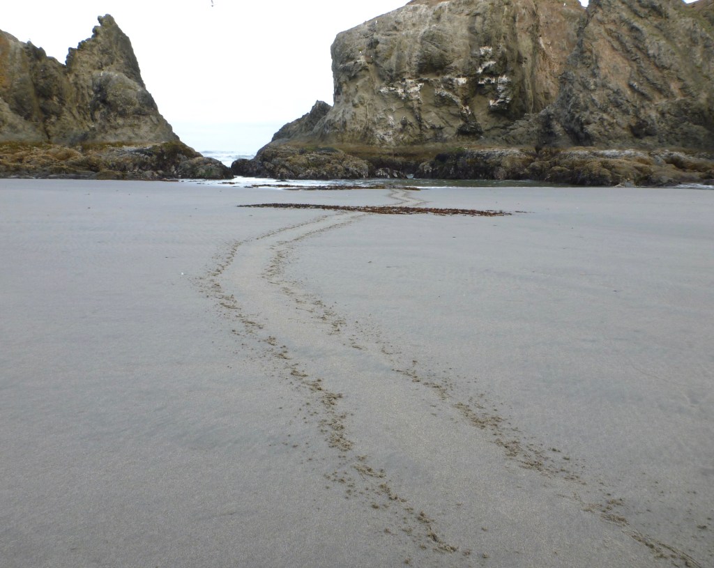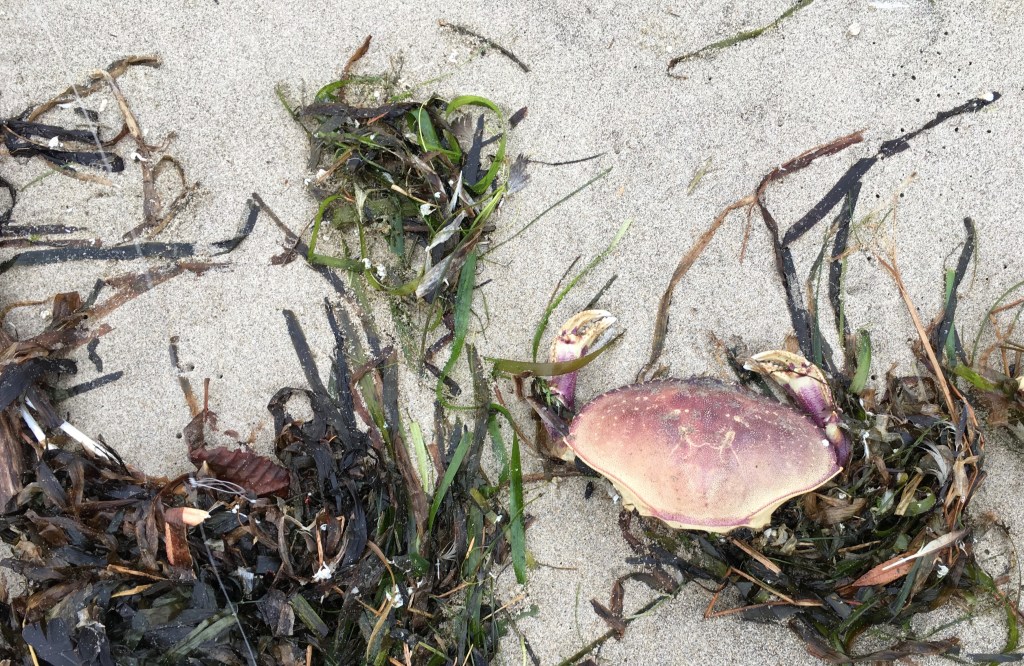 Looking down on the wrack lineDriftLost line | JuneSand dollar Dendraster excentricus seeking shelterLost crab buoyCallianax on the moveCallianax biplicata trailBeach strawberry Fragaria chiloensis, a pioneerWillow dock Rumex pioneering onto the beach***