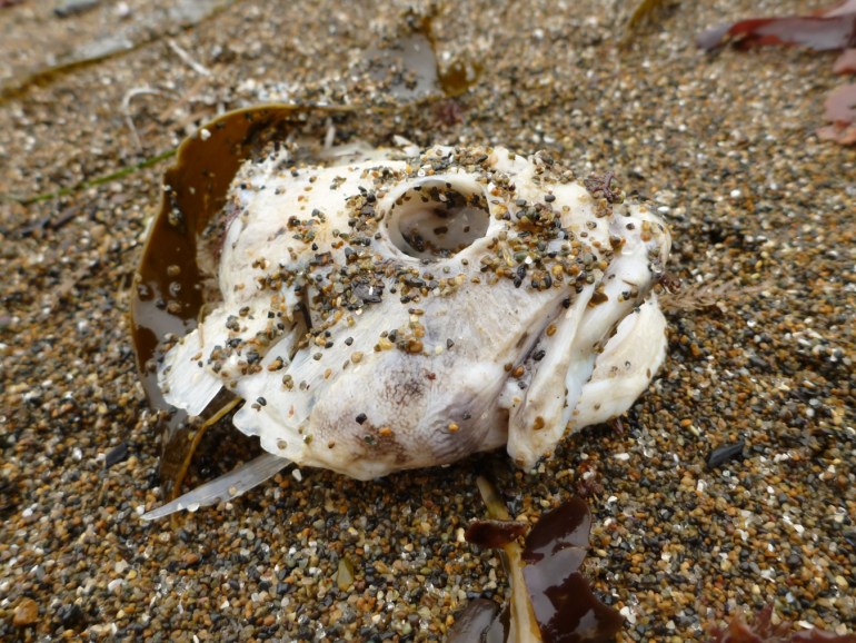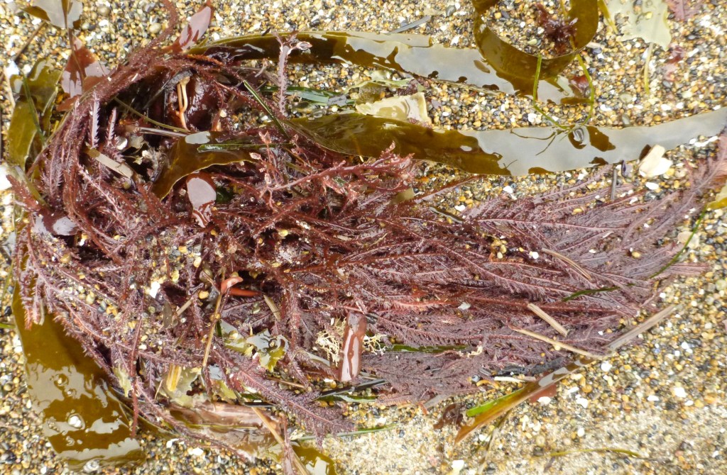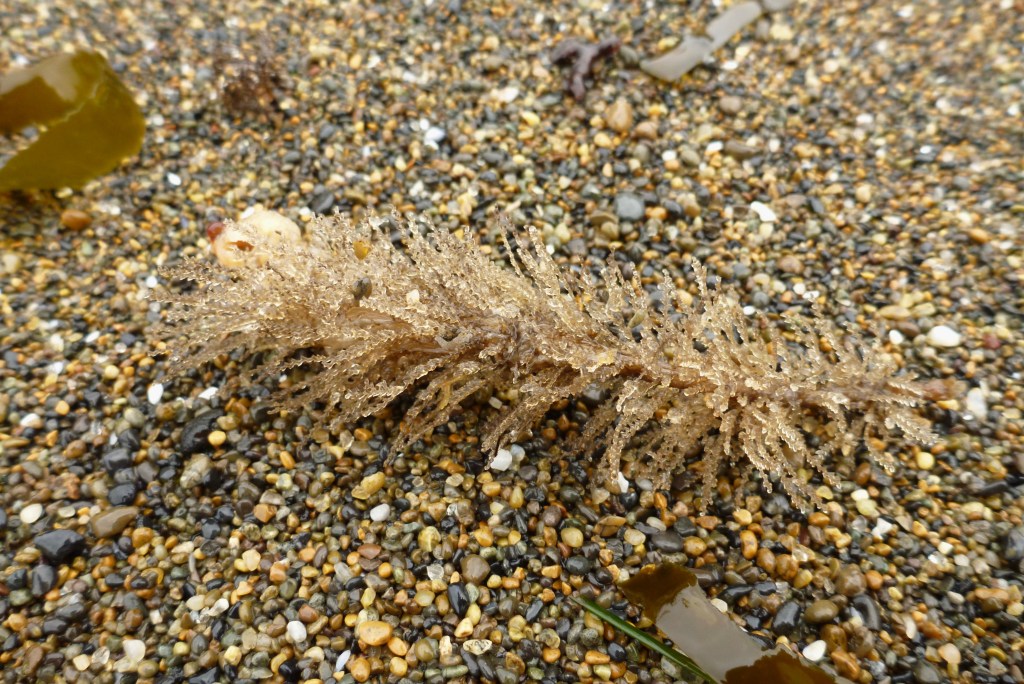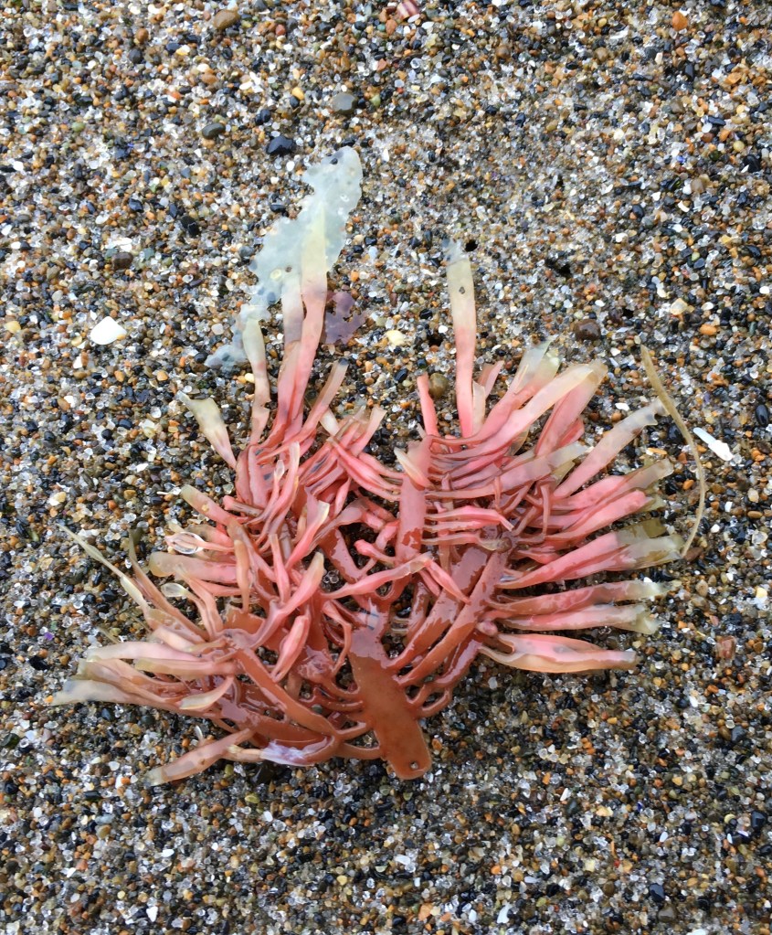 Orange finger sponge Isodictya rigida?Cabezon skull?Pterygophora californica also goes by old growth, walking, or woody-stemmed kelpLobed compound tunicate, Cystodytes lobatus | SeptemberWinged kelp, Alaria marginataStrap kelp, Lessoniopsis littoralisRed sea leaf Erythrophyllum delesserioidesBull kelp Nereocystis luetkeanaBunch of holdfasts on a bull kelp stipeFeather boa Egregia menziesiiSea cabbage Hedophyllum sessileA delicate red, something approximating Neoptilota or PtilotaSurfgrass PhyllospadixHydroidDon’t know what this translucent disc is…any ideas?A rose-red beautyHydroid on Laminaria setchellii stipeA fan-shaped lettuce-like red, complete with holdfastPterygophora californica showing off its sporophyllsA rosy dichotomously branching redFeather boa holdfast with a good grip dragged this rock ashoreLarge purple bladeRose-purple frillsFeather boa Egregia menziesiiWould love to know the history hereA lovely drifted redFan-shaped blades with frills, and blue-violet iridescenceDistinctive blades should make identifying this red easyStalked tunicate, Styela montereyensisStyela and a macroalgae quizDiversityDesmarestia***
