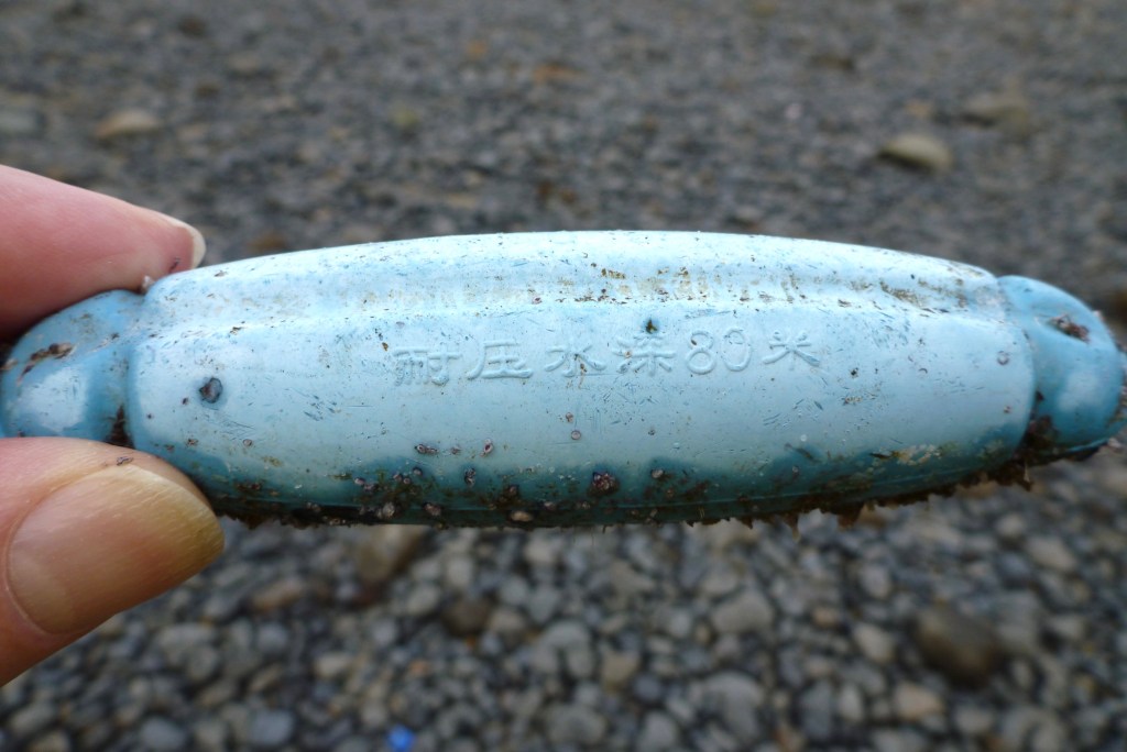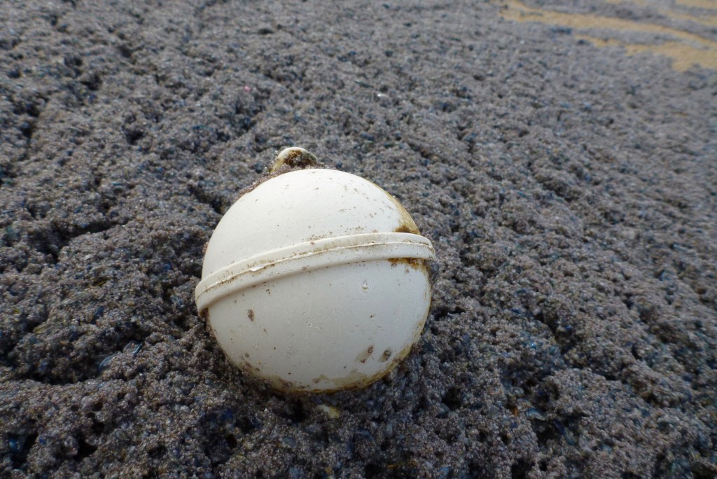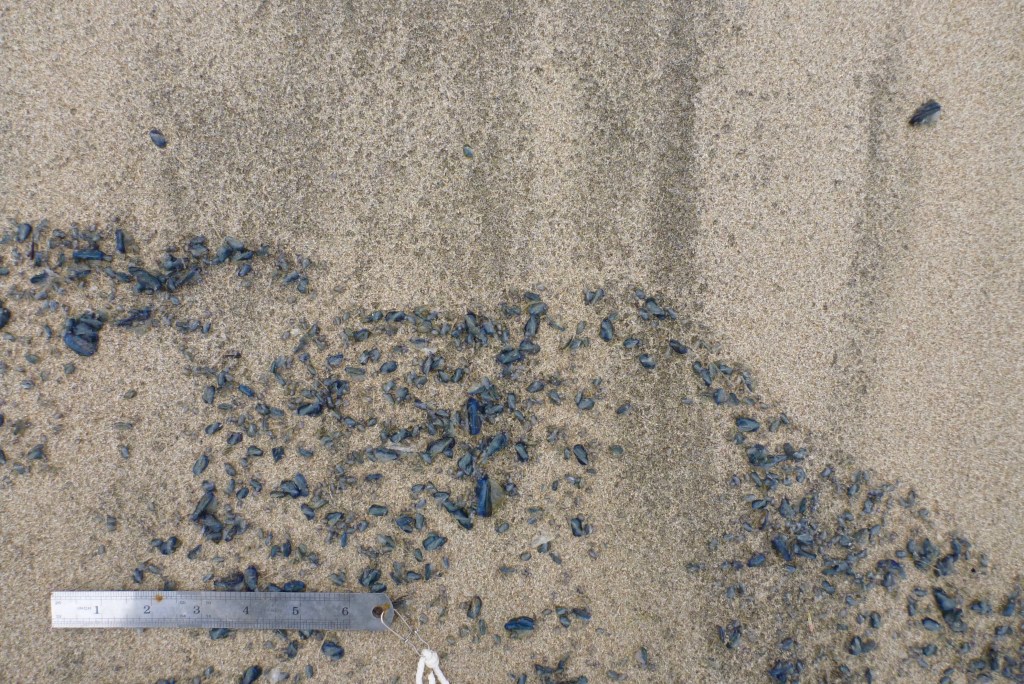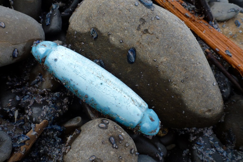 A common blue float on Oregon beachesSmall Velella velella dominate the drift lineA slippery mat of Velella velella coats the cobblesCobble-sized lugged trawl floatNet floatA common football-shaped plastic floatA common net floatOval net float (red)Working depth 80 meters?Bait jarVelella and raindropsVelella swash designTrawl or long line floatNet float (blue)Lugged trawl floatFloatCrab trap ringLugged floatLarge styrofoam dock floatBlue football floatNet floatPolystyrene net floatChlamysReceding tide leaves a Velella patternLugged floatLepas on a cracked buoy ***