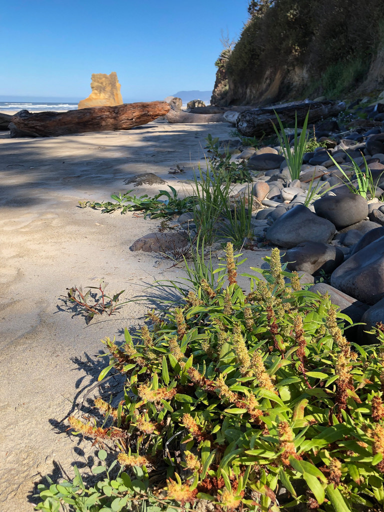 The Lion at sunrise | What surprises does the drift line hold? Driftline lite | feathers, eelgrass remnants, beach hoppers and their workings Gull tracks around a Dungeness crab carcassDrifted California mussel, Mytilus californianus, and haystack barnacles, Semibalanus cariosusCormorantDrifted surfgrass, PhyllospadixDrifted kelp and beach hopper workings Easy to see why they’re called haystack barnaclesDrifted eelgrass, ZosteraUpside-down Dungeness carapaceSalpTrace of a lone mole crab, Emerita analogaMoon jelly remnant?The Lion | South faceEccentric sand dollar, Dendraster excentricus | FragmentA surf zone sea stackCommon murreMoon jelly with beach hopper workings around the marginHigh tide isolates this sea stackRough keyhole limpet shell and drying eelgrass | Neither live on the sandy beaches, but here they areI’ve always assumed this is the shell of the spiny pink scallop, Chlamys hastataRumex, pioneering onto intertidal sand | Probably Rumex maritimus