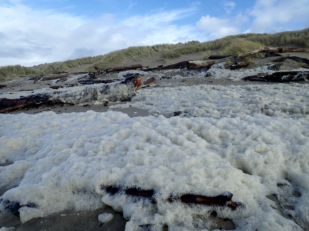 The beauty of low tide at dawnA drift line dominated by spruce needles and mole crab moltsSea foam, at times, is a major wrack component on the reefs. Seaside plantain, Plantago maritima, pioneering onto a wrack line rubble of cobbles and sea shellsStriped shore crab, Pachygrapsus crassipes | they love crevices in big high intertidal rocks***