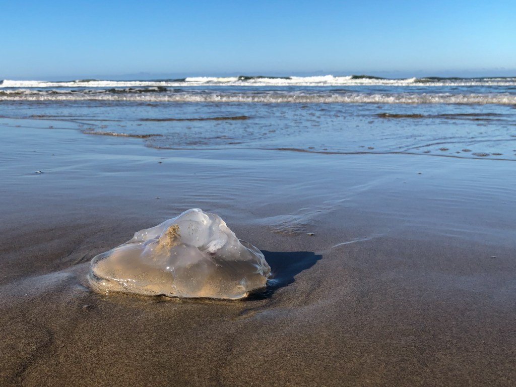 Ever lovely MacrocystisDrift bull Kelp, Nereocystis luetkeana, and a side of MacrocystisA good-sized beached jellyfish | Has fried egg characteristics, so Phacellophora camtschatica?From the swash zone to the spruce forest, drift Fucus, in the mirrorSand-dwelling tube worms, but what?A nod to terrestrial connectionsDesmarestiaGulls loafing, bellies full of crabs and barnaclesSignature workings, guess who | Callianax biplicataI know some beach hoppers that are going to be overjoyed once this bull kelp find a resting place higher on the beach***